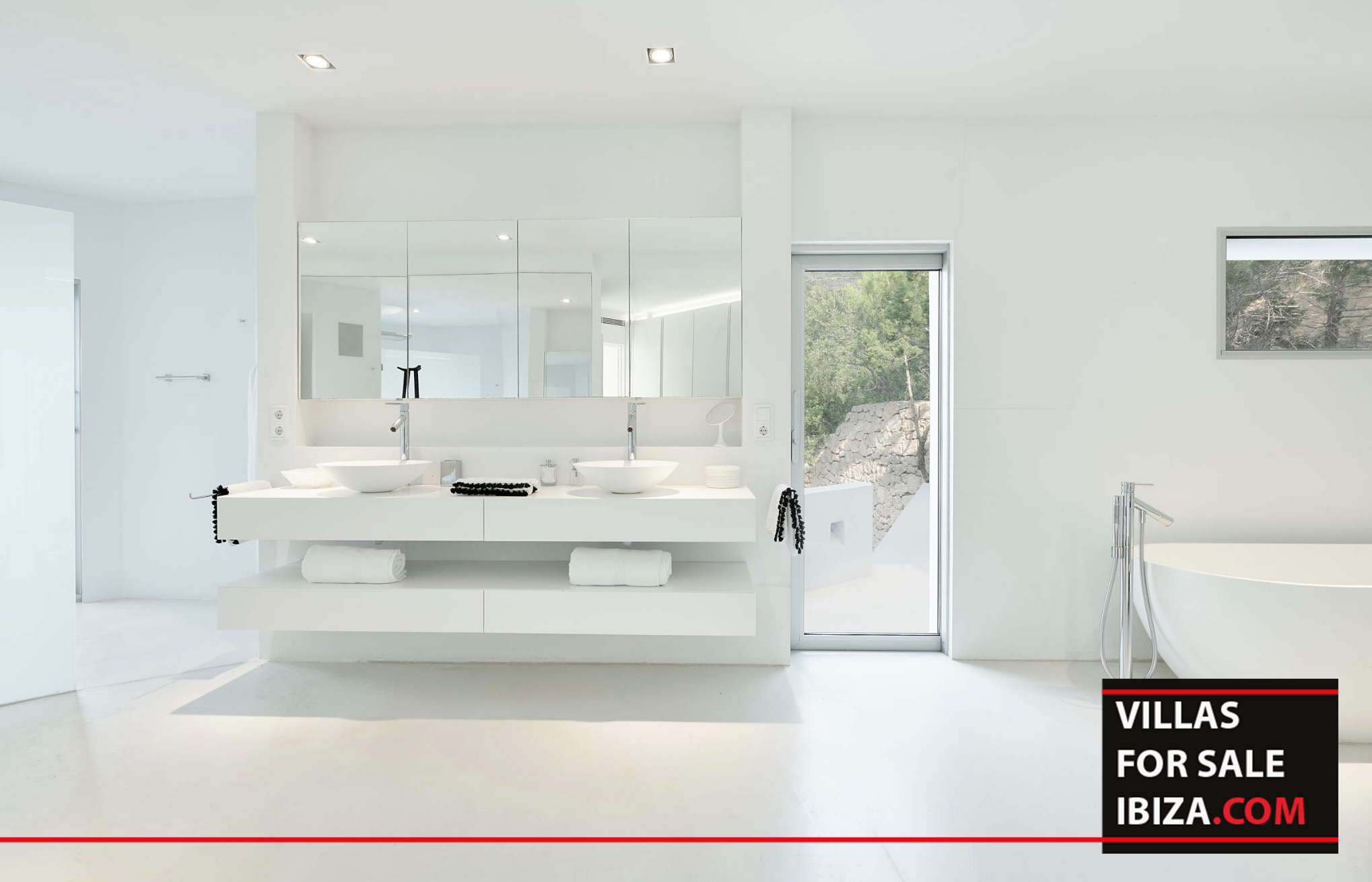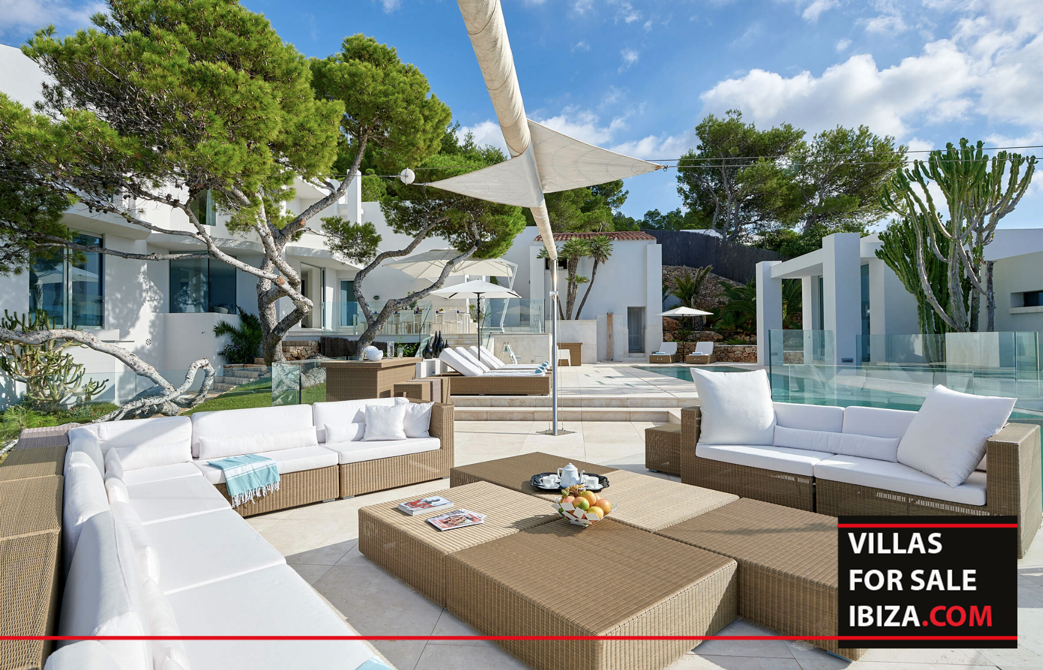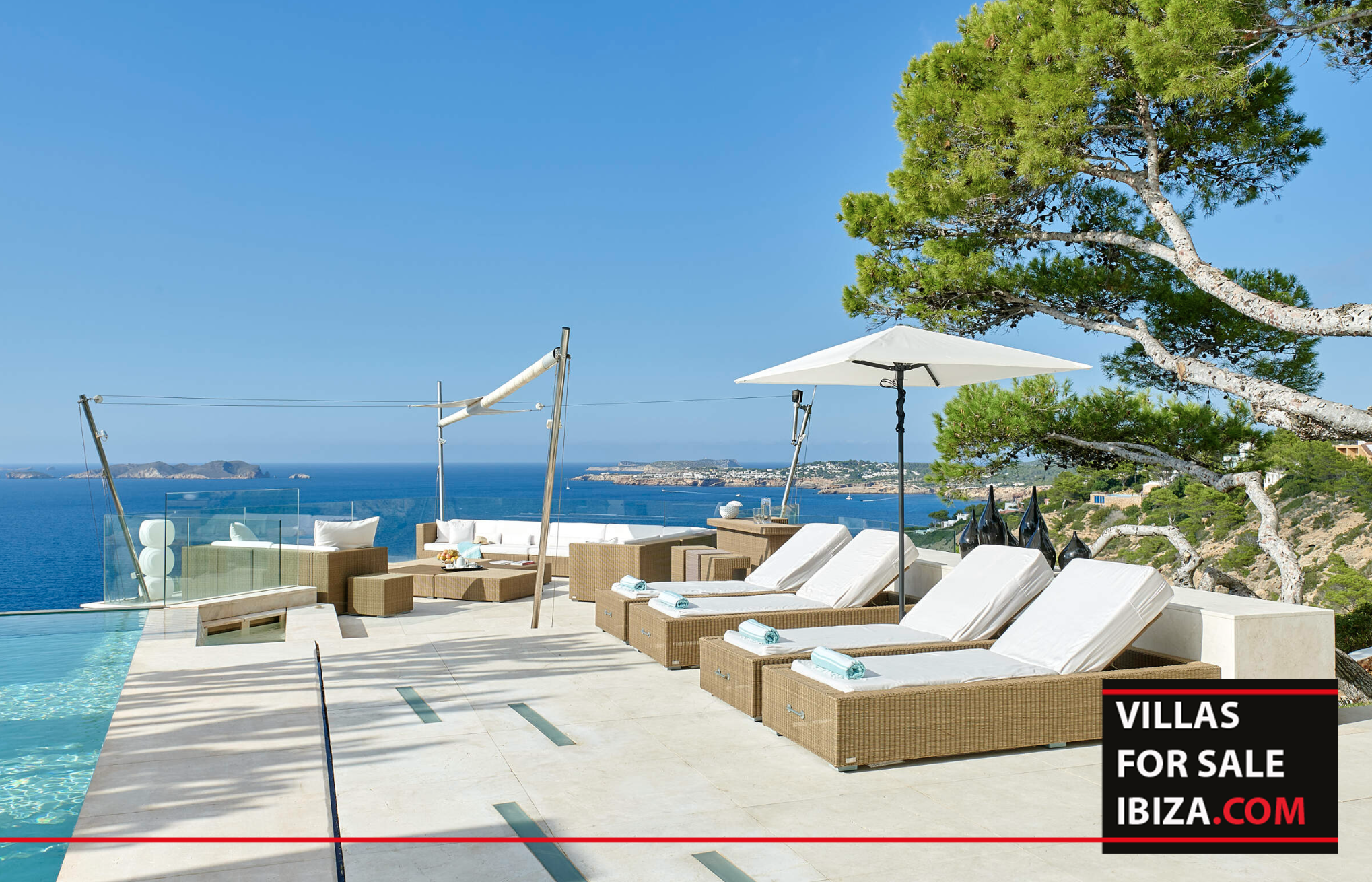 Set on the stunning west coast of Ibiza, overlooking the turquoise waters of Cala Vadella, this exceptional frontline villa offers a rare combination of privacy, natural beauty and direct connection to the Mediterranean. Surrounded by a 10,000 m² private estate, the property is embraced by rocky landscape, pine trees and exotic cacti, creating a peaceful and unique setting where the horizon and the sea become part of everyday living.